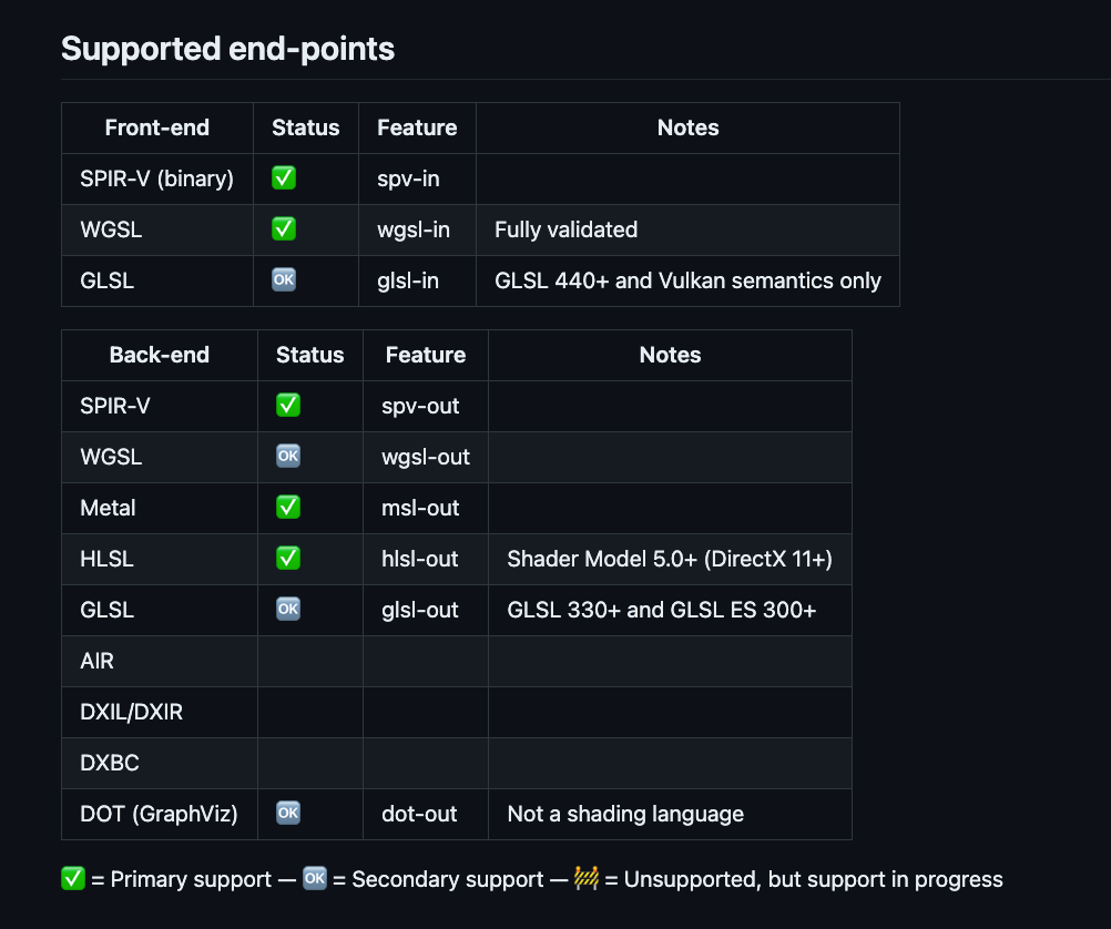 HLSL/GLSL/MSL -> SPIRV -> WGSL -> SPIRV -> [platform native]